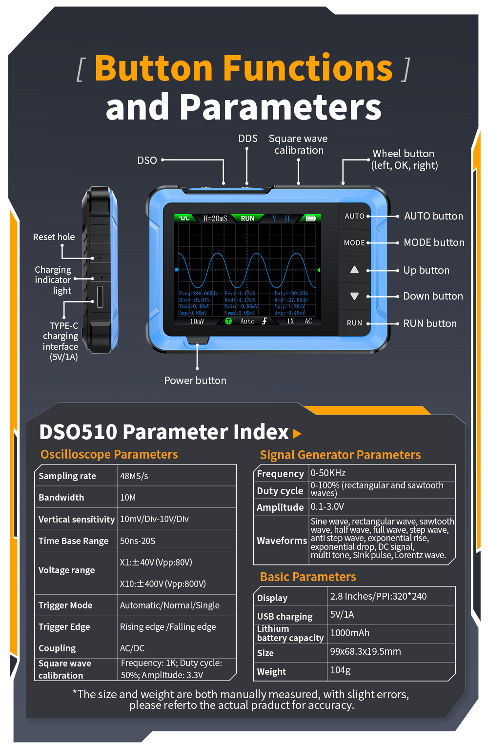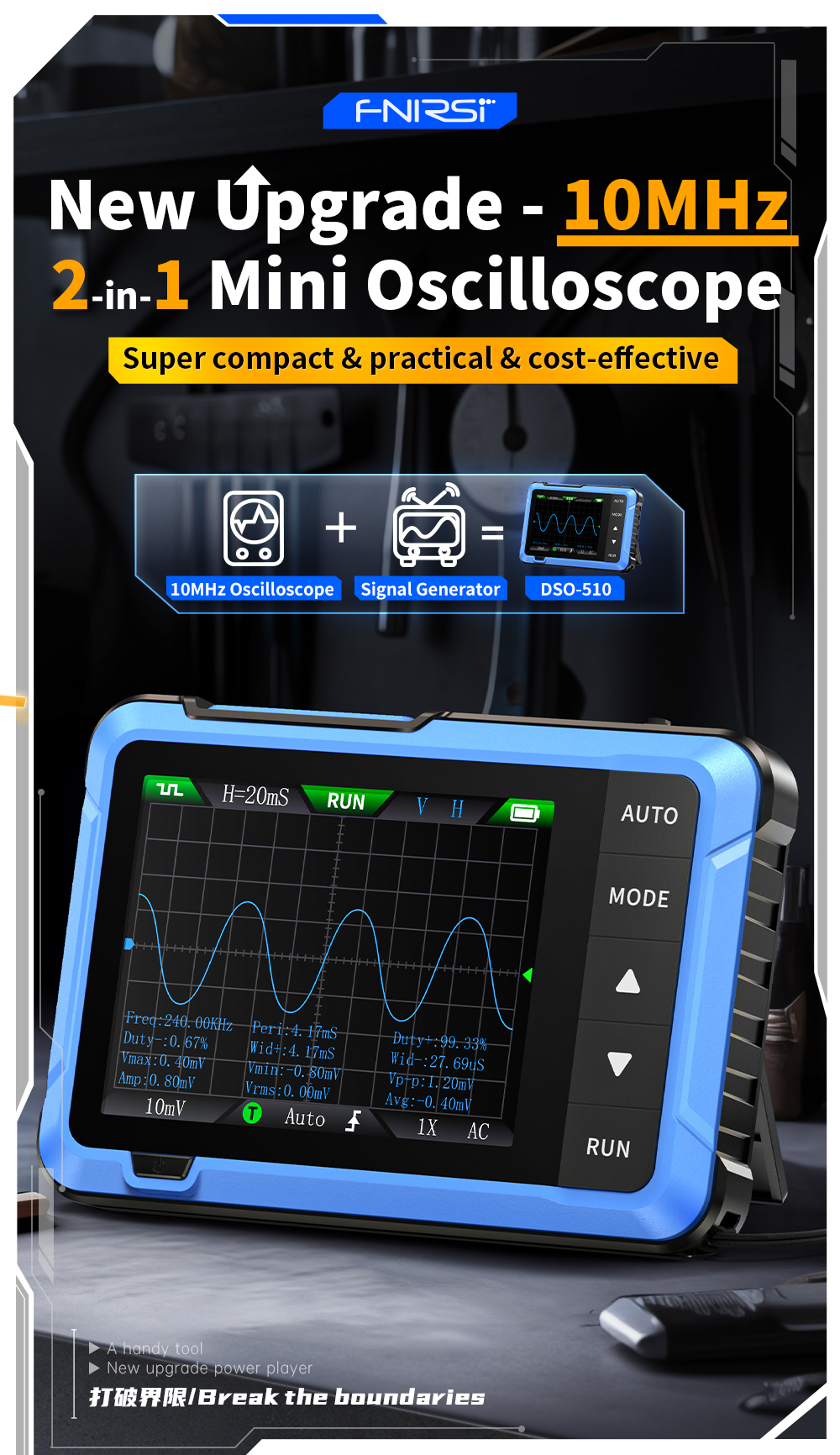 Máy hiện sóng Fnirsi Máy hiện sóng cầm tay kỹ thuật số nhỏ cầm tay DSO-510 Máy phát tín hiệu đa chức năng